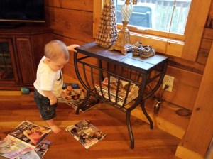 Our trip was fantastic! We went up to Wisconsin where we rented a nice, large cabin that has enough room for at least 6 adults. I don’t share space well (not well at all, actually) so if we share a cabin with anyone else, it must have a bedroom for each couple because I just can’t handle the whole, “I’ll crash on the floor or sofa,” approach to travel. I am too old for that. HA! Actually, I think I’ve always been too old for that. We had 5 adults and Matthew – and it was perfect! Matthew slept pretty well considering he was in a new place. The first night was rough, the second one was not, and then the third was rough again because we moved to a different bedroom so it would be quieter for him. He napped on schedule for at least an hour each time while we were there, and fell right back into his routine here at home.