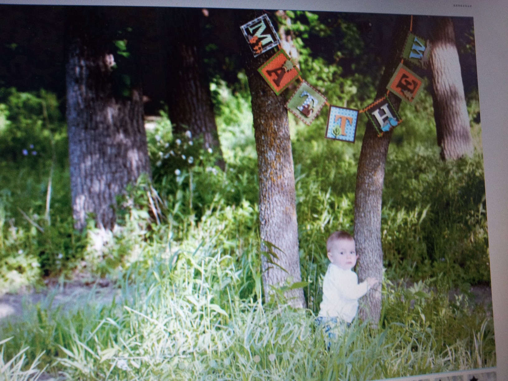 I got the proofs of Matthew’s birthday invitation photos. The gals are working on the design now, but here is a preview. This is not the one we’ll select because he’s not smiling, which is too bad because I just LOVE the angle and setting of the shot! I want to do this same type of image for my sister’s and my business and put all of our kids in the photo. This is a photo of my computer screen, so it’s not good, but you get the idea. This was taken by my good friend, Denise, from White Linen Photography: