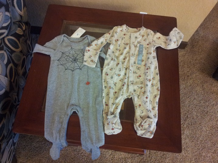 I mean – they were $6 each – what was I supposed to do? I thought about how holiday-specific they were and that if this pregnancy was a bust, that these would be a completely useless purchase. I then figured, if this pregnancy is a bust, I’ll just mail them on over to Belle!
