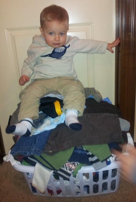 I feel like I am constantly rotating stuff out and into their closet, it’s crazy how fast these kids grow, right?! We have had tons of hand-me-downs, but as we head into the bigger sizes, 2T+, the hand me downs are dwindling, big time. I started buying clothes in bigger sizes every time I see something on sale (like, a REALLY GOOD SALE) to get a jump on things we’ll need down the road, but it feels like a never ending process. Great shot, he definitely doesn’t look too sure of himself up on that stack 😉