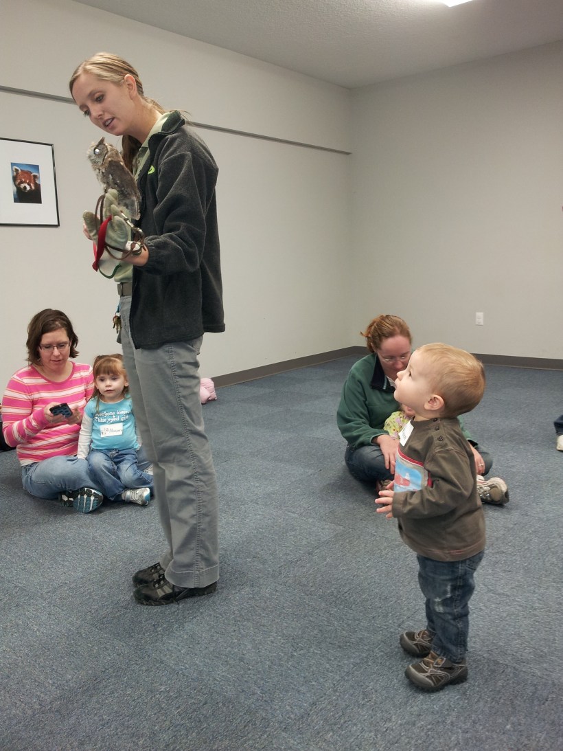 I take him to “Zoo Tunes” every other week at our local zoo. They always bring out a live animal. Snakes, turtles, chickens… and a screech owl! The owl took the cake!