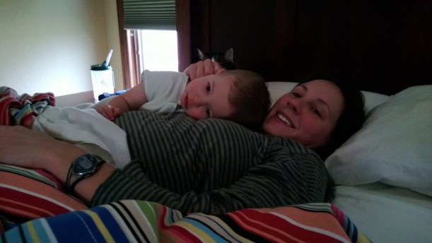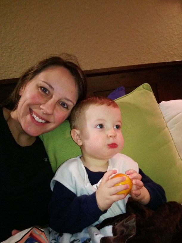 Taken moments before his double ear infection diagnosis on Monday – the infections he’d had since the fever started Thursday morning. You would have never know this kid was so sick!