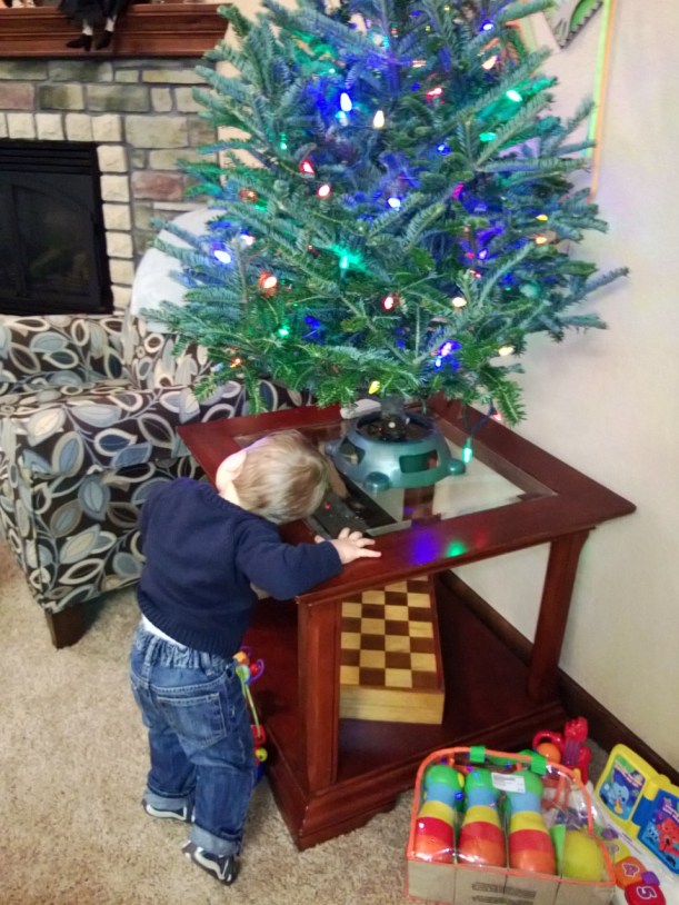 We bought a tiny little tree for Matthew this year since he’ll be obsessed with it and would have a hard time keeping away from a big tree full of glass ornaments. Already, he’s loved on his tree over and over again and I don’t see it stopping. My sister came with her three kids to stay the night last night – craziness! We had left-over prime rib that we put in baked sandwiches with Munster cheese. They were better than the original roast (they ALWAYS are!) and everyone was happy! Fun times!