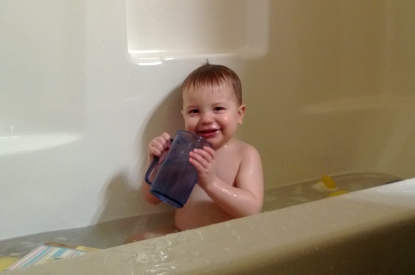 LOVE him. What a smile he has!! Bath time is the best!! Sofia cries and flails around when it’s time to get out!