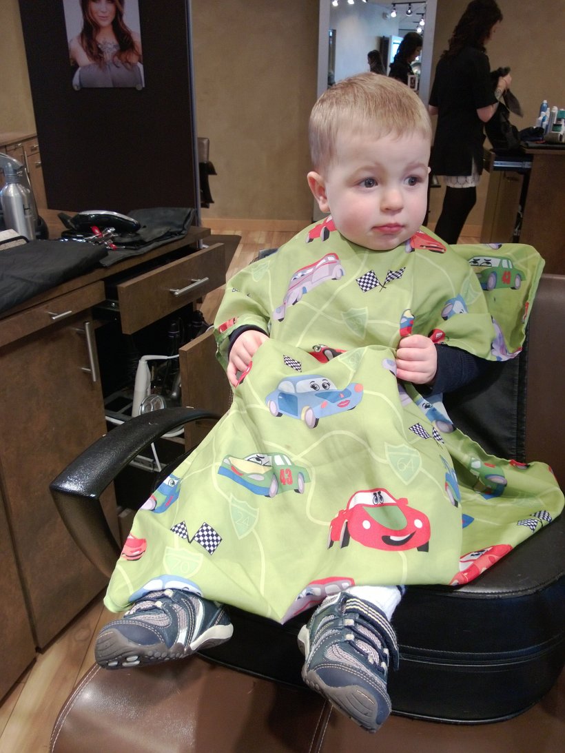 First time sitting in the big boy chair without Mama during his hair cut. Not a peep out of him! He had his monkey (under his cape) and watched videos of his friends and himself on my phone the whole time. Proud moment for me!