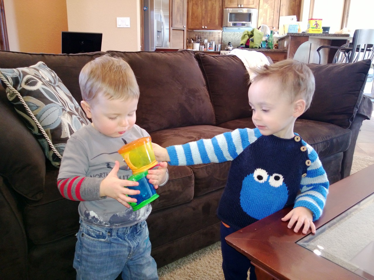 We had a busy Tuesday – we had a morning play date with “Westie your Bestie” (twin brother to Vera, Matthew’s girlfriend), then lunch with Aggie and her little friend at CFWHG, and then a 2.5 hour nap (thank GOD because the 1.5 hour naps from the last two days have NOT been enough).  Matthew woke up happy and, for the first time, noticing the baby pictures on the wall above his crib (“Who’s That?”).  Precious!  We then grabbed a snack, milk, and water to come back to watch the L.or.ax.  He’s LOVED it = Good day for all!  B was at a work event tonight so Matthew and I ate dinner together (lots of leftovers are gone now!) and then he climbed all over me for about 30 minutes on the floor.  Great ending to a fun, busy day!