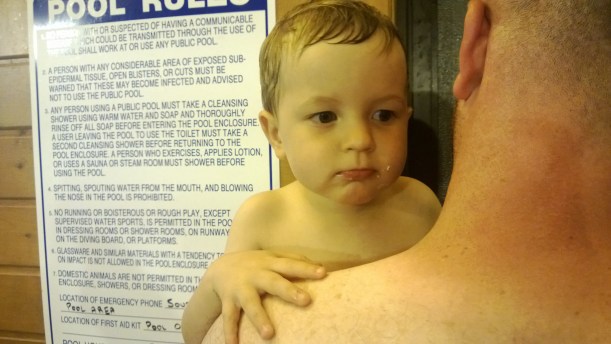 We’re in a two bedroom townhouse and B is sleeping in one room with Matthew, and I sleep in the other room with Bryson. We come back for naps, eat quickly, trick Matthew out of the pool to avoid crazy fits, and I nurse very publicly in 95 degree heat. This is hardly a vacation!