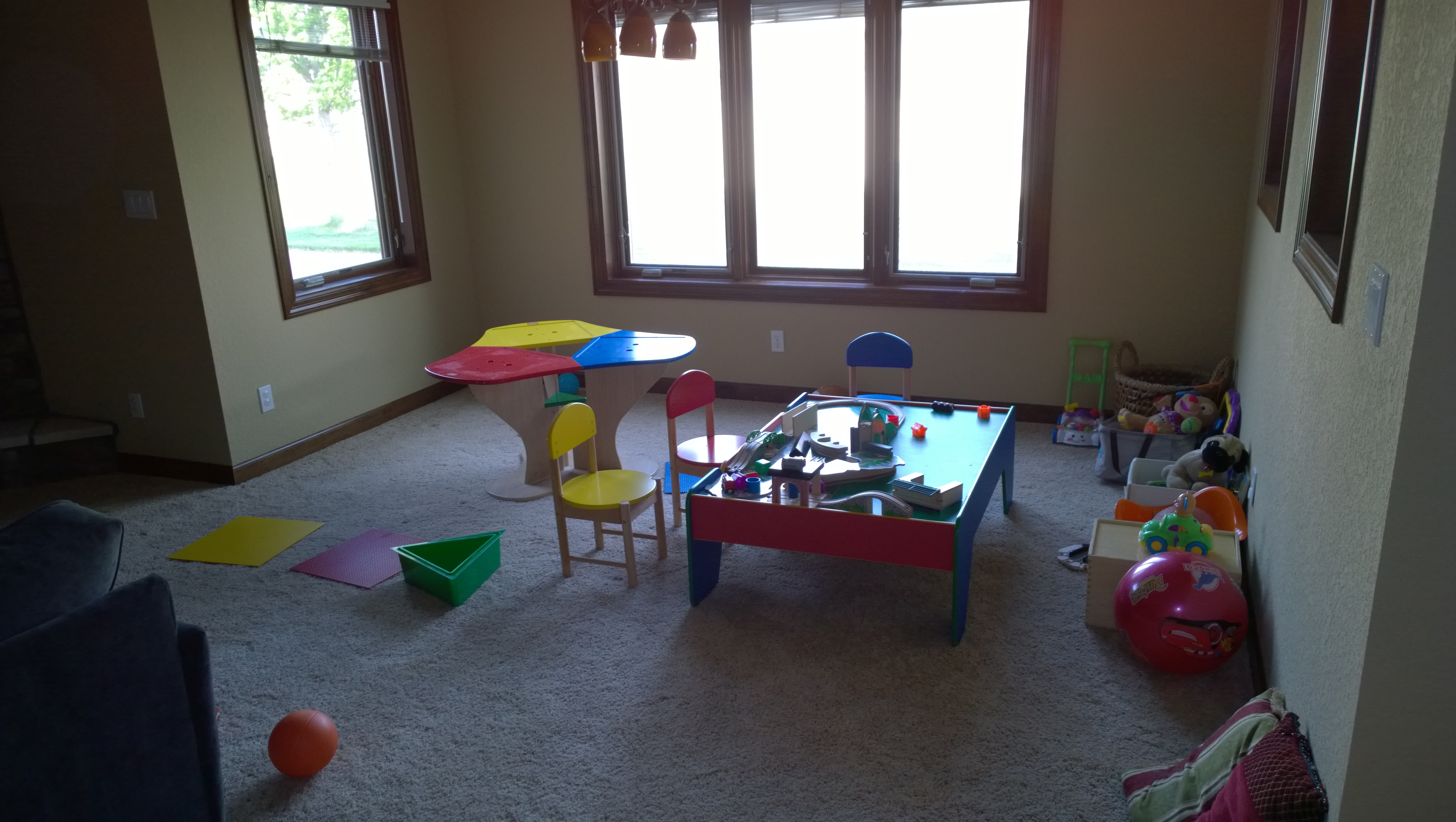 The cherry on this sundae, though, is the kids’ new play space in the basement! We have had dreams of them having their own space if we could just get rid of our stuff. Well, we got rid of a lot of crap and now they have their space where the sofa used to be! It’s awesome!