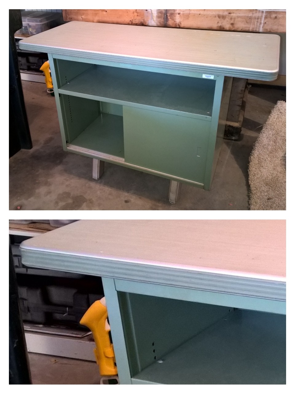 Their garage was FULL of vintage stuff – like truly vintage, highly desirable stuff.  Their house is stocked with vintage things too, but they’re leaving them there for the time being for staging the house to sell.  The big gem… well the 4 big gems… vintage “tanker” steel office credenzas/shelves.  And not in grey, not in army green.  But in TEAL.