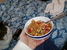 WP_20130206_001 February 6, 2013 by Courtney Leave a comment Next Image → Breakfast = best.granola.EVER with berries and whole milk yogurt. YUMM!