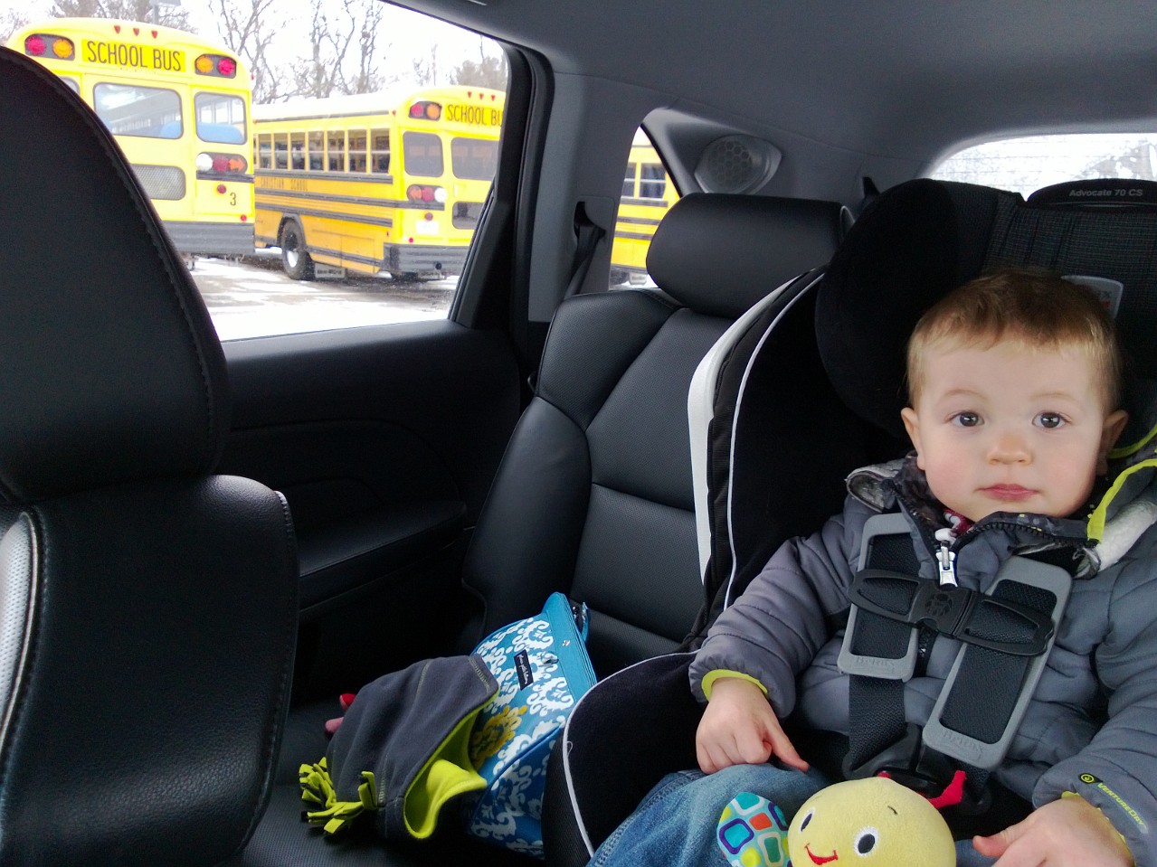 Matthew’s favorite siting, in the entire world right now, is a school bus! If it’s parked, it’s awesome. If it’s moving, it’s even better. If there are more than one on the road, it’s life-altering 😉 We have a school just down the road from us that usually has 1-6 buses parked out back at any given time. We drive by to “see the buses” at least once a day. If we come to the “bus intersection” with Matthew in the car, he promptly instructs us where he wants us to take him. It’s quite cute, and we usually oblige him because – well – he’s cute 😉