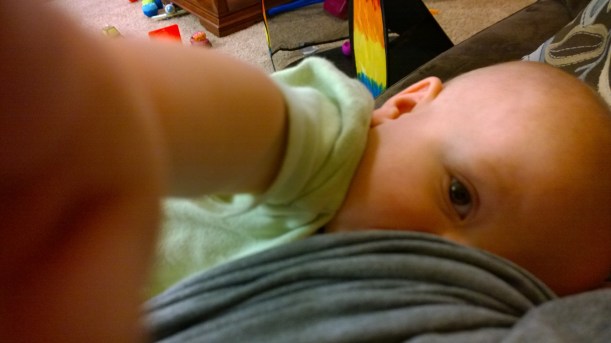Bryson took a nice morning nap and was due at 1:45 for his afternoon nap. He actually laid down on our bedroom floor as I got Matthew in bed. By the time I got to Bryson, he was overtired and punchy. He wouldn’t nurse, he wouldn’t sleep. He screamed bloody murder for me. I went and tried nursing again and that time, he dozed off… But screamed again when I put him in the crib.