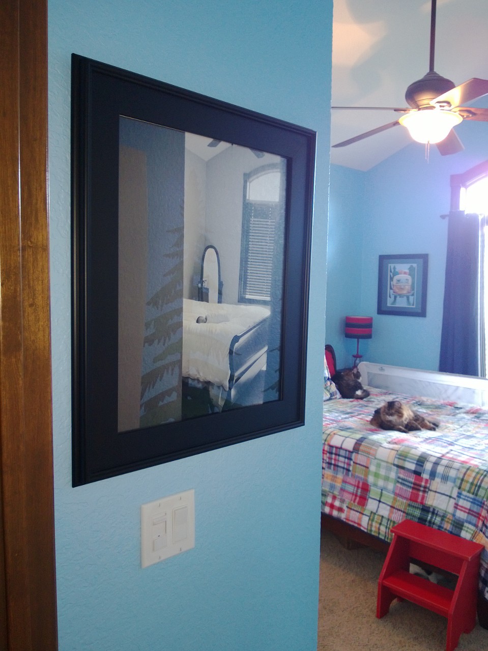 I need to check to see if the draps are like the quilt or the duvet. Hmmm.. Notice the light blue wall… see below on paint!